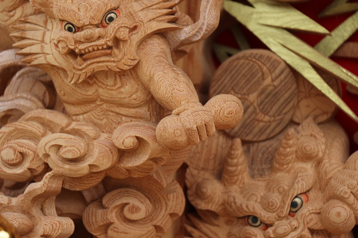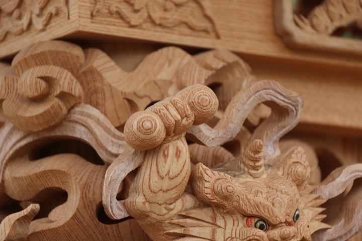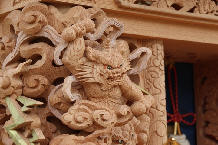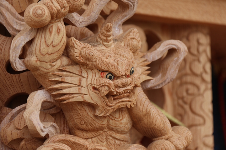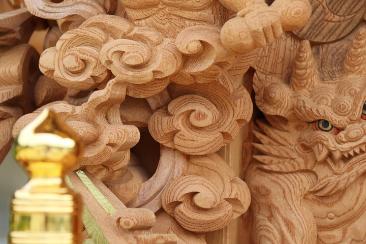 | ◆ 彫物画廊 feat. 山中渓 #.24 (彫物画廊通算 #.591) 彫物題材:風神雷神 / 大屋根柱巻左 |