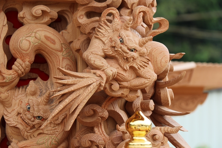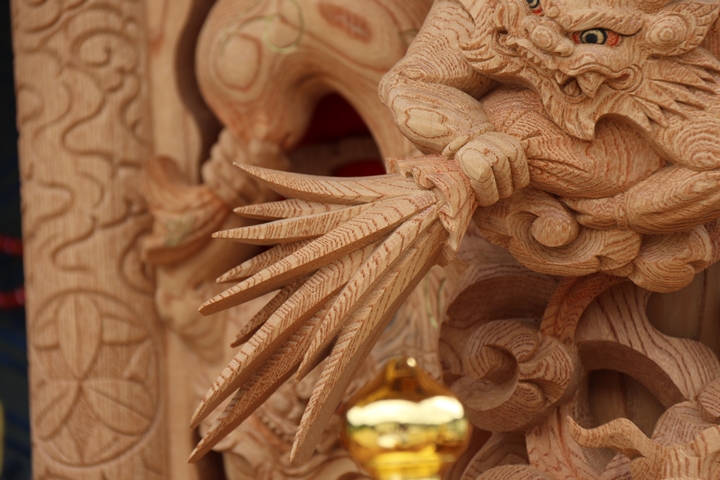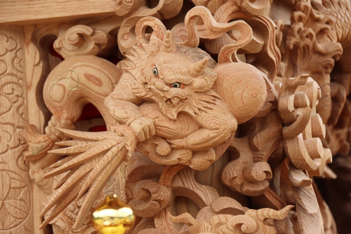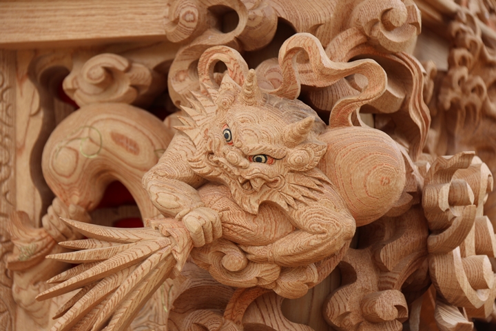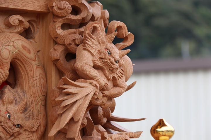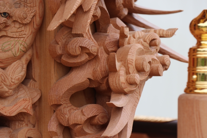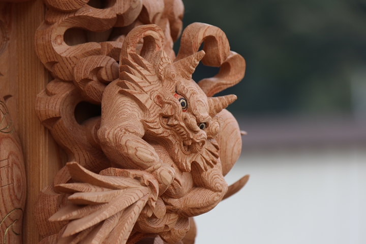 | ◆ 彫物画廊 feat. 山中渓 #.27 (彫物画廊通算 #.594) 彫物題材:風神雷神 / 大屋根柱巻右 |