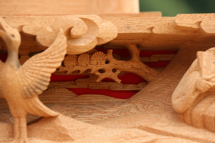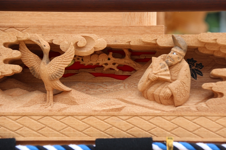 | 前回に引き続き「彫物画廊」と題して山中渓の彫物を御紹介します。今回は大屋根板勾欄正面右の題材である「源氏 源頼朝」を御紹介します。その前にまずは「源頼朝」の題材について。 |