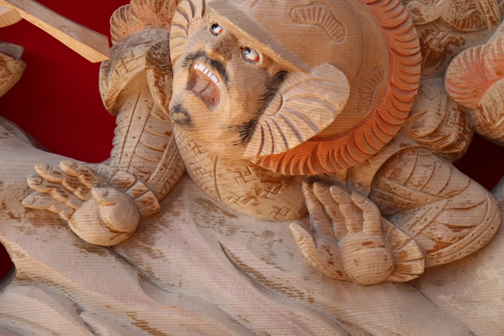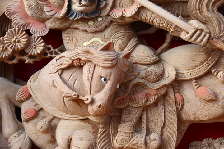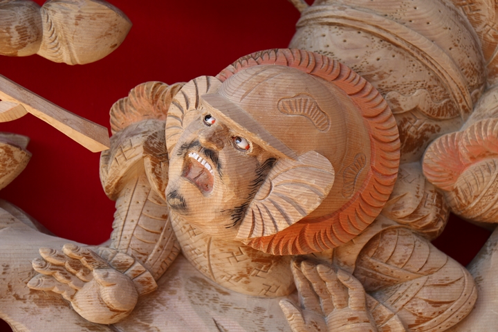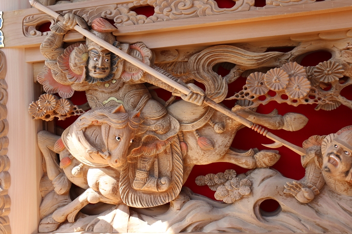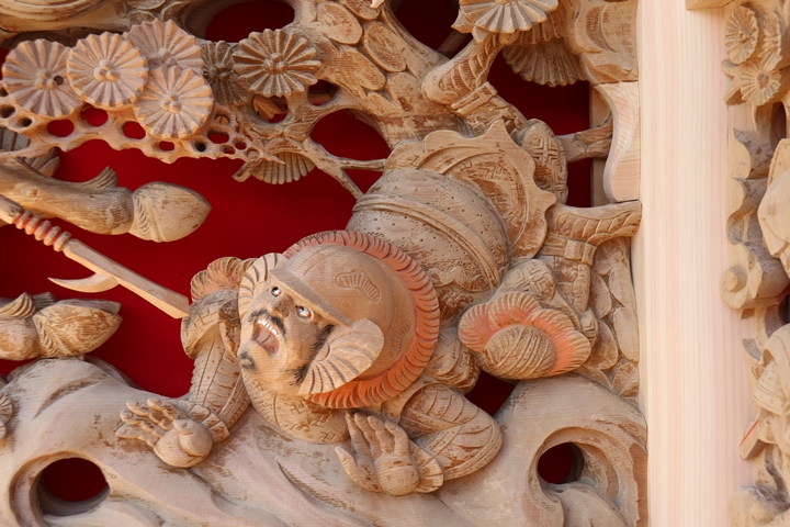 | ◆ 彫物画廊 feat. 黒田 #.6 (彫物画廊通算 #.599) 彫物題材:山陣に徐寧 釣鎌槍を使う / 大屋根幕板右面 |