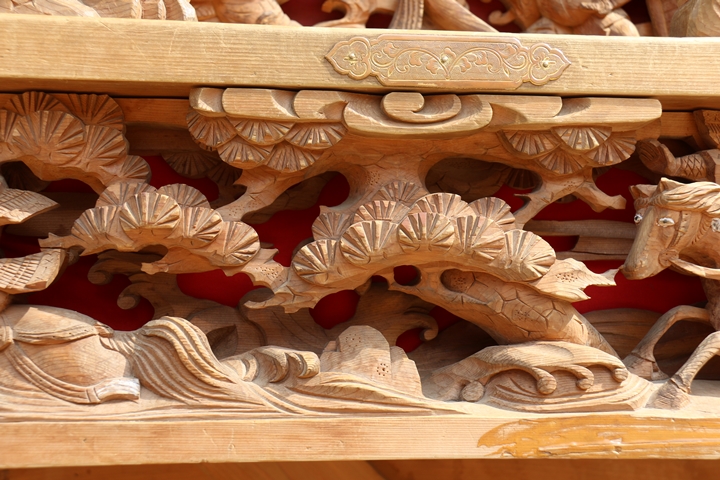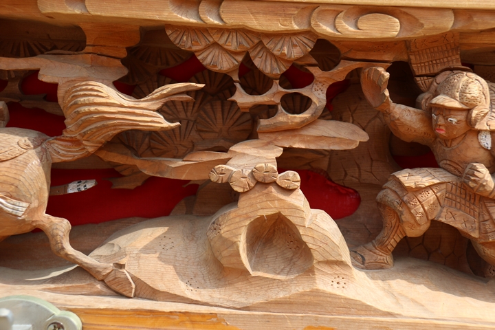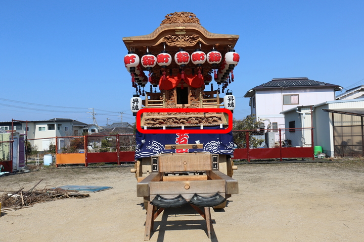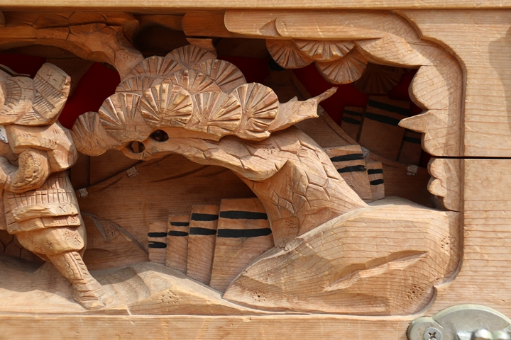 と題して先代・新町の彫物を御紹介します。今回は大屋根縁葛正面を御紹介します。申し訳ありませんが彫物の題材は不明…、もしお解かりになられたら是非ともお教え下さいませ。