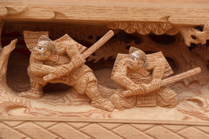| 前回に引き続き「彫物画廊」と題して山中渓の彫物を御紹介します。今回は大屋根板勾欄左面の題材である「布引の滝」を御紹介します。その前にまずは「布引の滝」の題材について。 |
