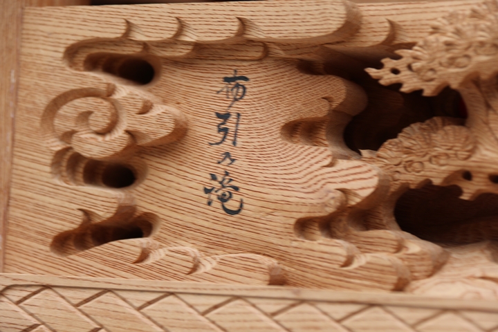 | ◆ 彫物画廊 feat. 山中渓 #.33 (彫物画廊通算 #.609) 彫物題材:布引の滝 / 大屋根板勾欄左面 |