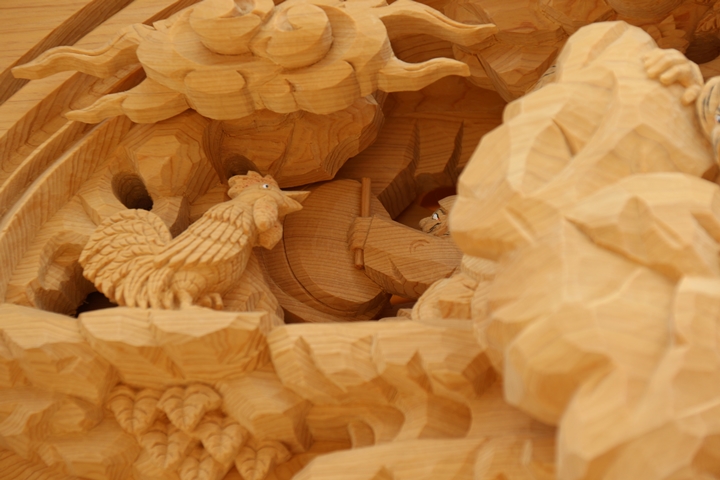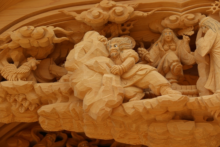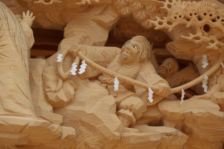 | ◆ 彫物画廊 feat. 新町 #.4 (彫物画廊通算 #.617) 彫物題材:天照大神天岩戸隠れ / 大屋根懸魚正面 |