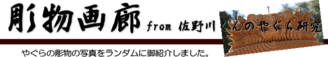 | 前回に引き続き「彫物画廊」と題して新町の彫物を御紹介します。今回は大屋根車板後面の題材である「瓊瓊杵尊天孫降臨」を御紹介します。その前にまずは「天孫降臨」の題材について。 |