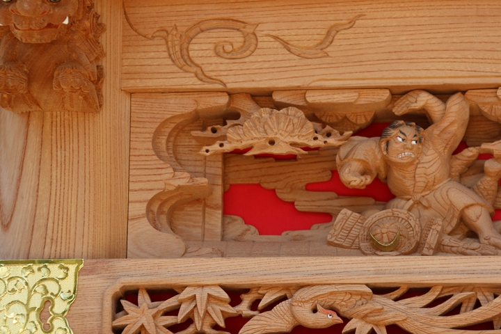 | ◆ 彫物画廊 feat. 吉見 #.4 (彫物画廊通算 #.628) 彫物題材:佐藤忠信 碁盤投げ / 大屋根欄間正面 |