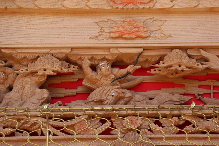 | ◆ 彫物画廊 feat. 吉見 #.5 (彫物画廊通算 #.629) 彫物題材:那須与一 扇の的 / 大屋根欄間右面 |
