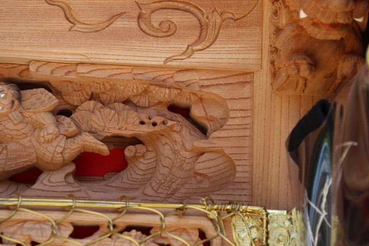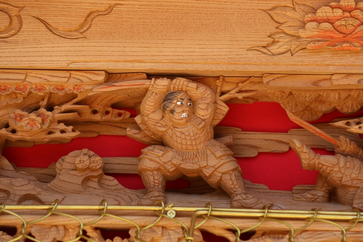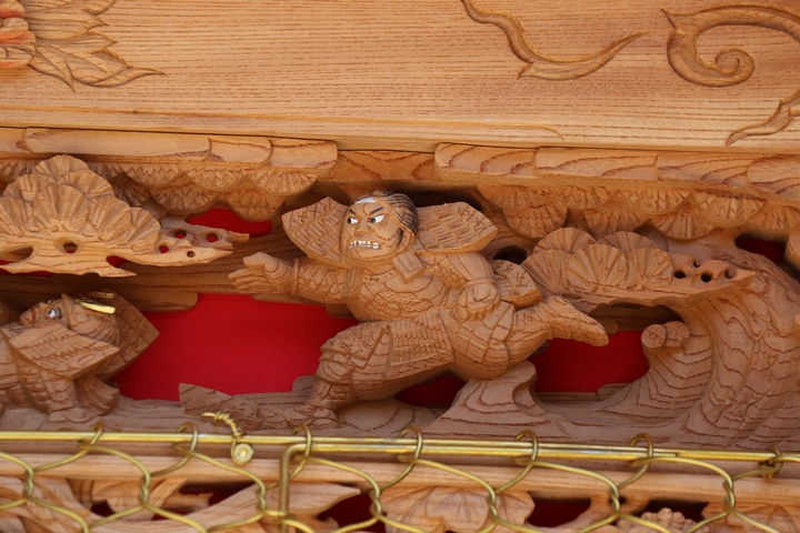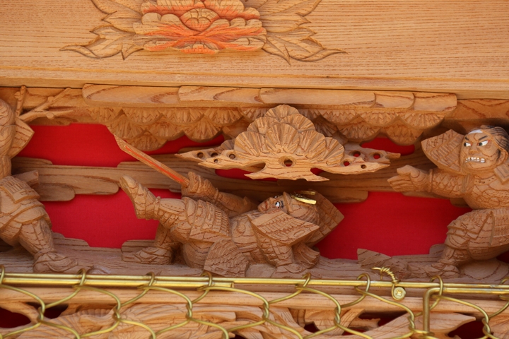と題して吉見の彫物を御紹介します。今回は小屋根欄間右面を御紹介します。申し訳ありませんが彫物の題材は不明…、もしお解かりになられたら是非ともお教え下さいませ。