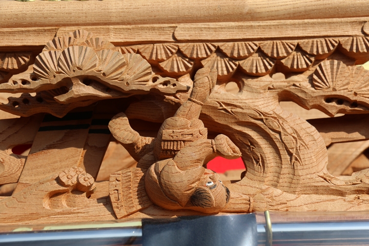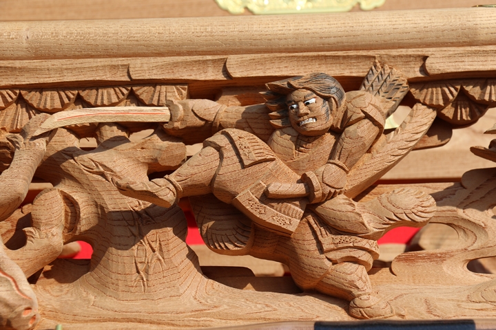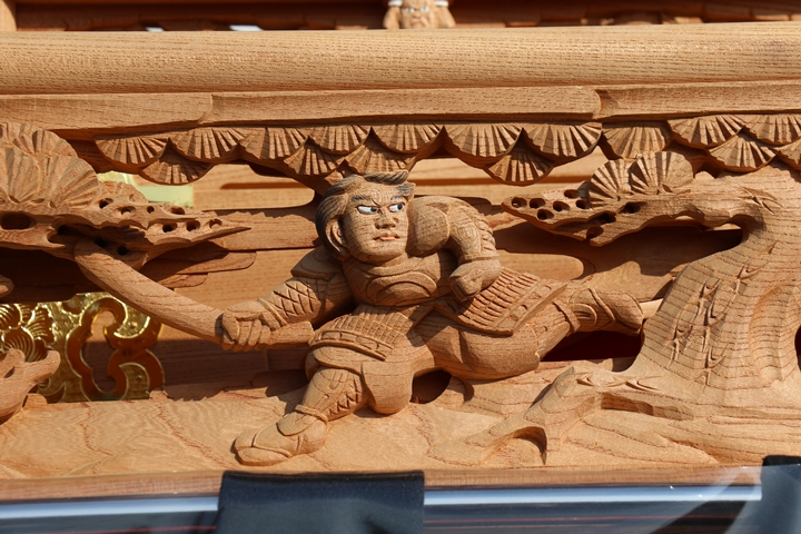 | ◆ 彫物画廊 feat. 吉見 #.11 (彫物画廊通算 #.635) 彫物題材:仁田四郎猪退治 / 大屋根板勾欄右面 |