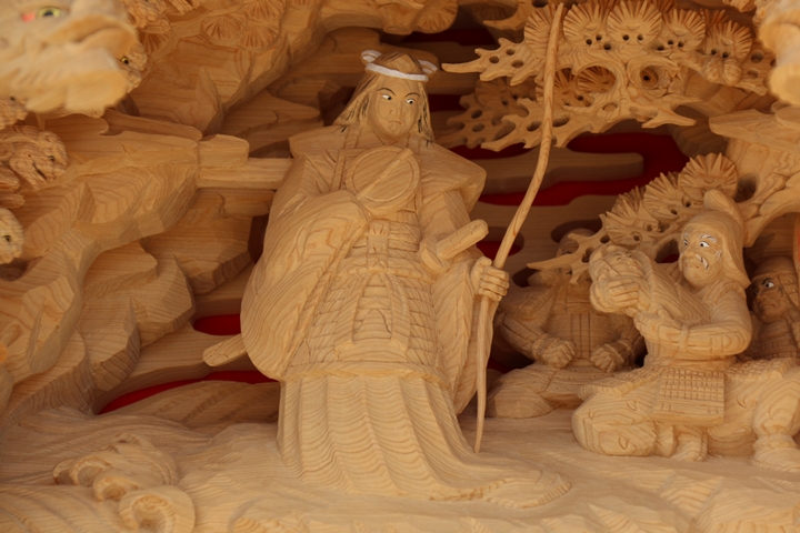 | 今回から「彫物画廊」と題して約2年5ヶ月前の令和5年5月5日(金)に撮影した新町の彫物を御紹介します。まず今日は大屋根桝合正面の題材である「神功皇后応神天皇平産」を御紹介します。その前にまずは「神功皇后 応神天皇を平産す」の題材について。 |