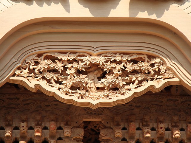 ![]() ▲ 葉桜に静御前の舞 / 大屋根懸魚正面 ![]() ▲ 雲に牛若丸と烏天狗 / 大屋根懸魚後面 ![]() ▲ 稲穂に雀 / 小屋根懸魚正面 … |
