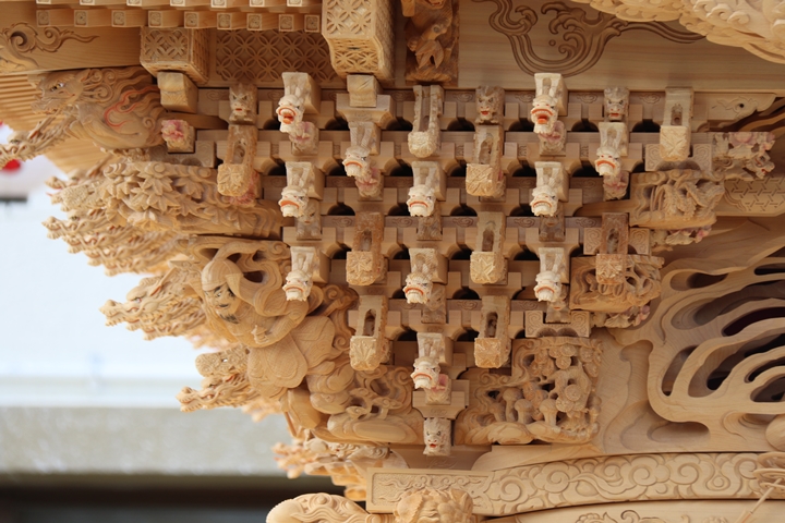 以前にも自然田上組のやぐらの彫物は御紹介済ですが祭り前の9月29日(日)、記念誌撮影会に部外者ながら参加させて頂き更にエエ環境下で彫物等を撮影する機会を頂戴しました。そこで今回、