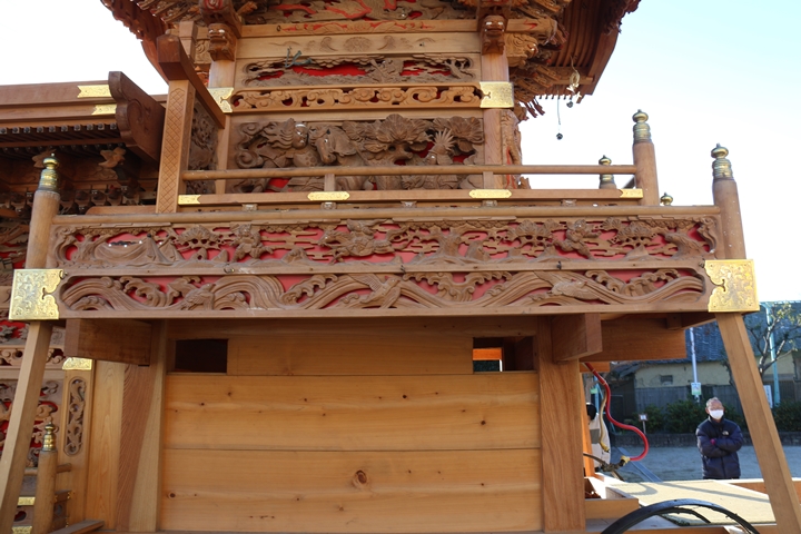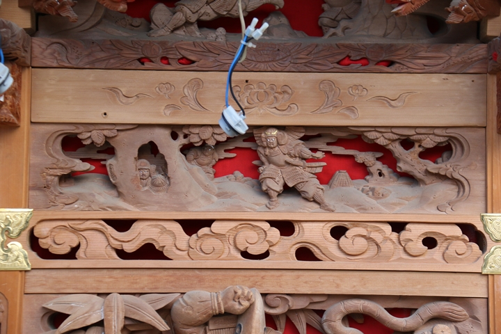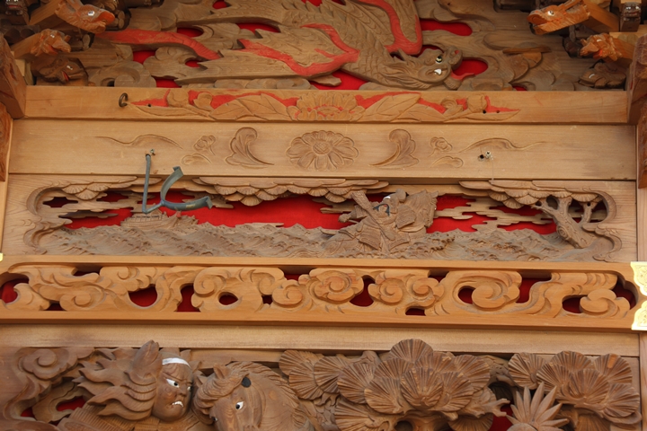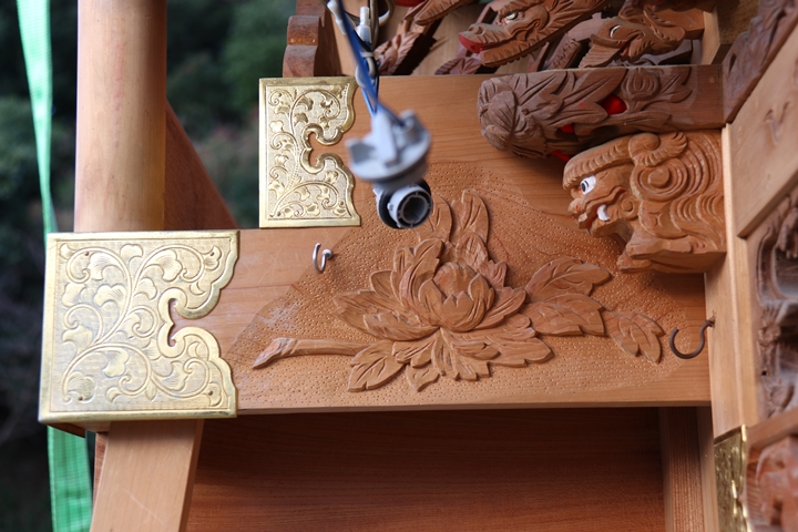 先月22日日曜日に足を運んだ岡本やぐら搬出、搬出作業の合間に邪魔にならない様に少しだけ彫物を撮影する事ができました。そこで今回、主要な彫物を