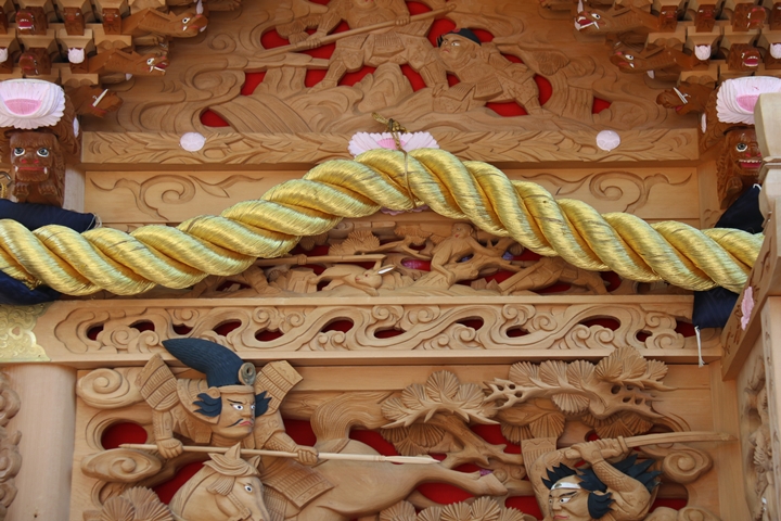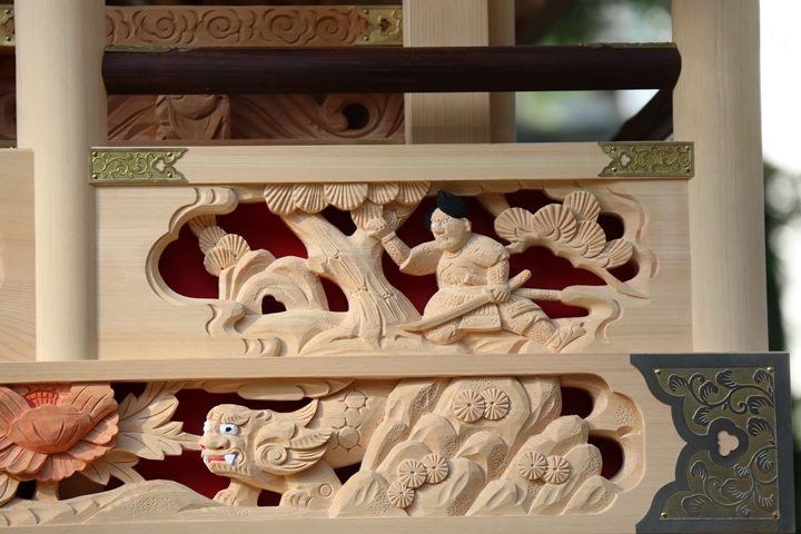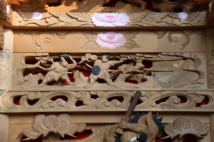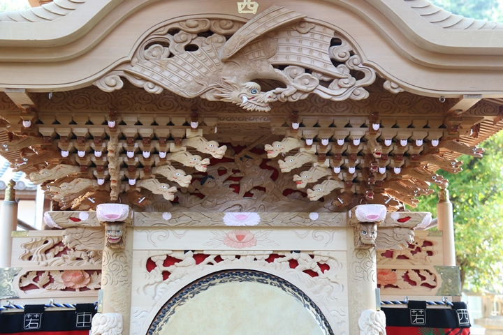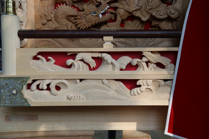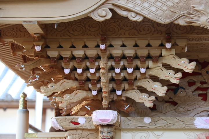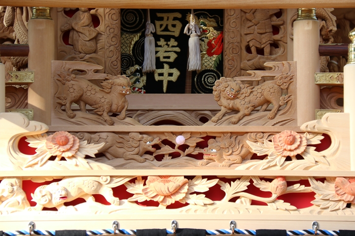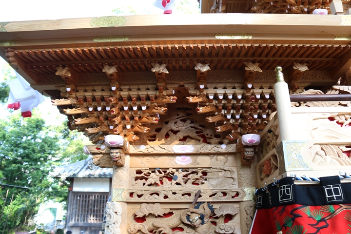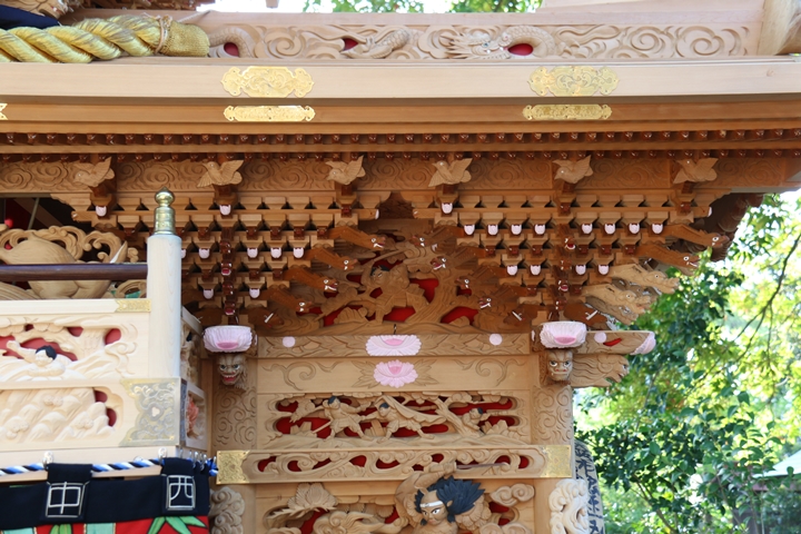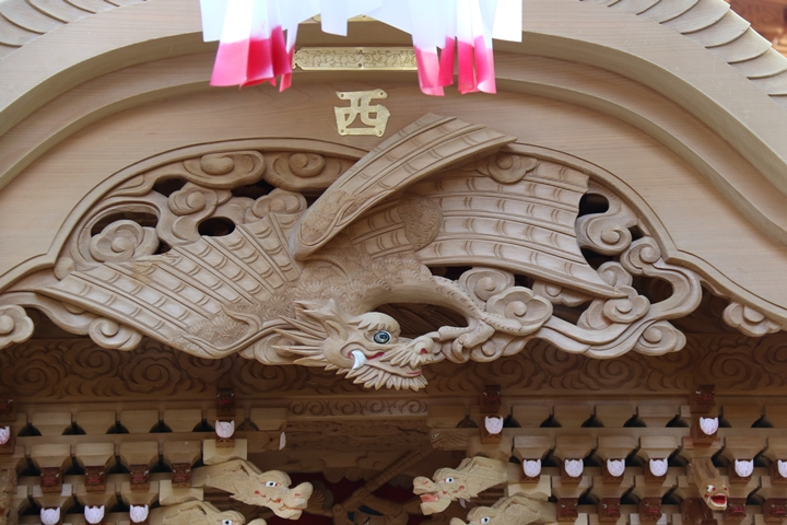 ちょうど2週間前に行われた箱作西やぐら入魂式、当日の朝少しだけ彫物を撮影しました。今回の大修復で提燈が取り外しタイプに変更されたので彫物を撮りやすくなりました。そこで今回、