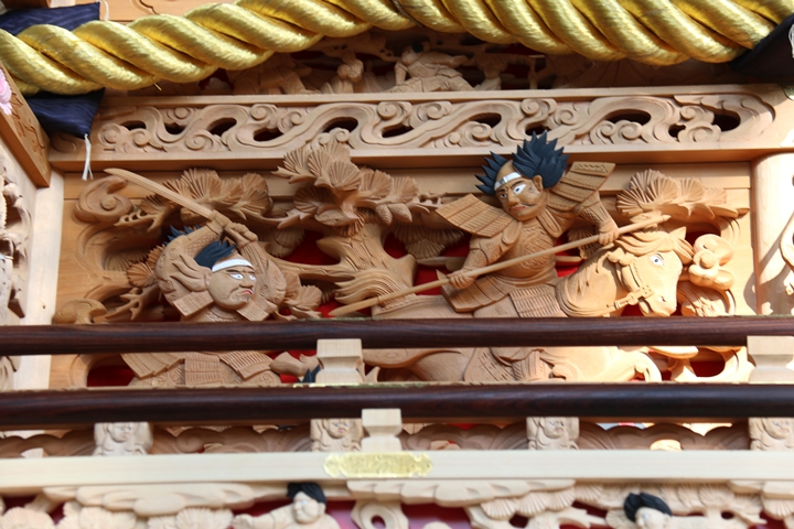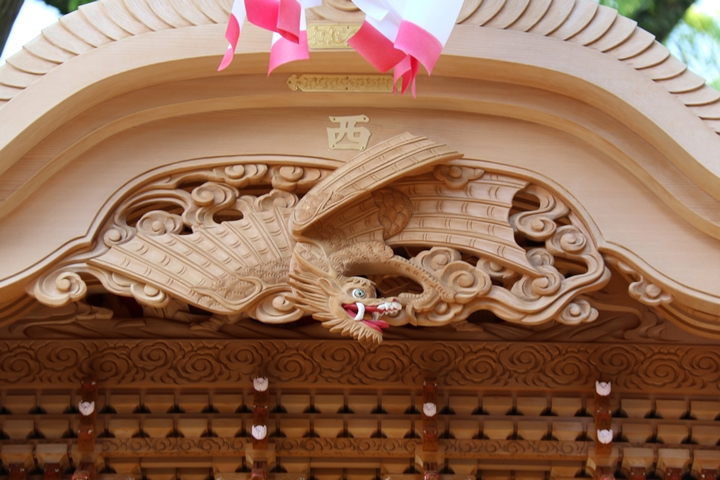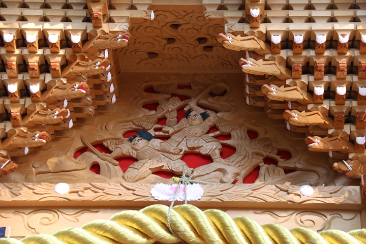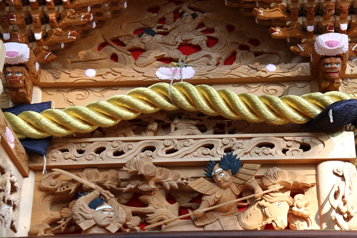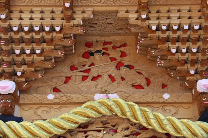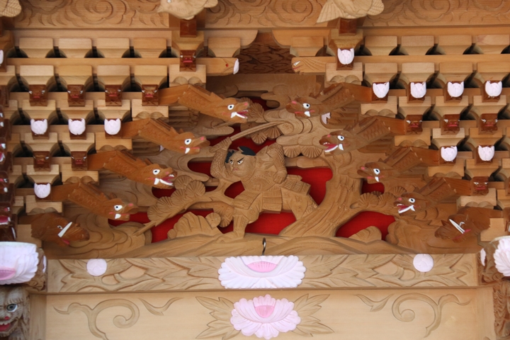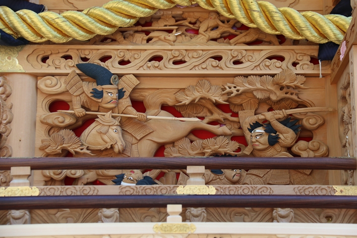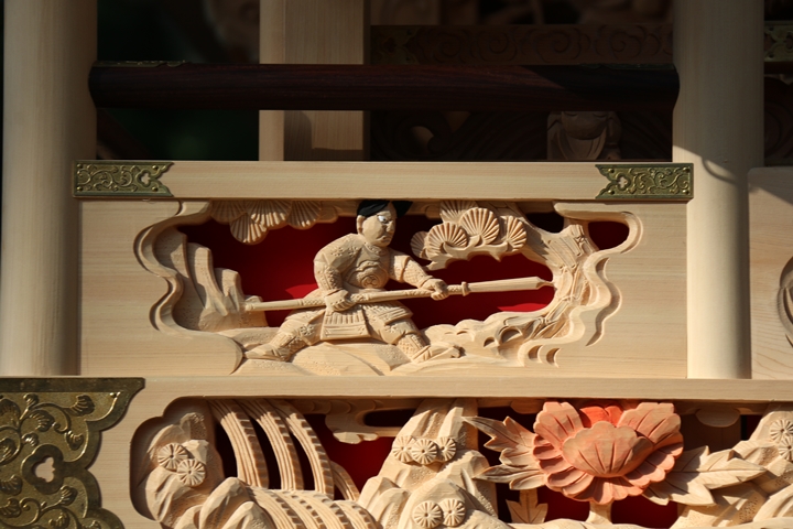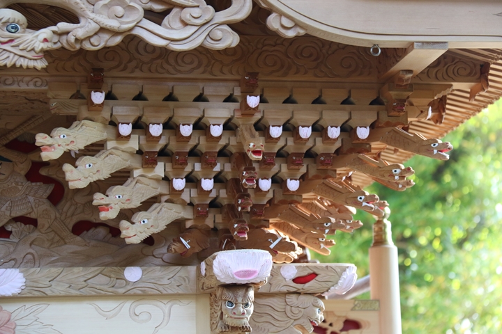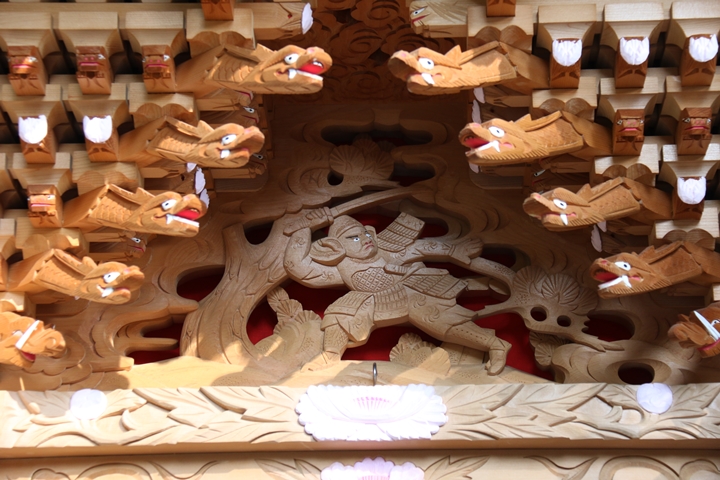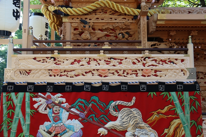 ちょうど2週間前に行われた箱作西やぐら入魂式、当日の朝少しだけ彫物を撮影しました。今回の大修復で提燈が取り外しタイプに変更されたので彫物を撮りやすくなりました。そこで今回、