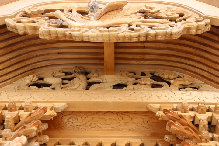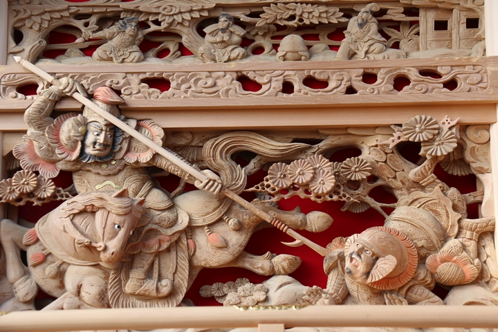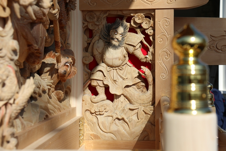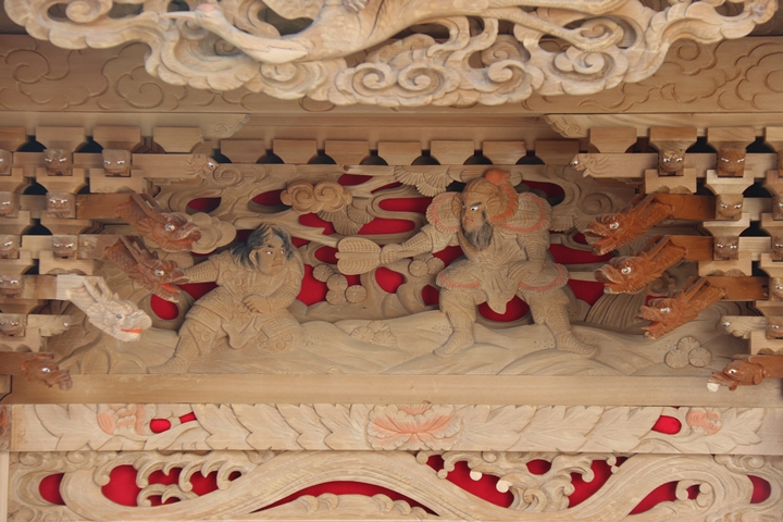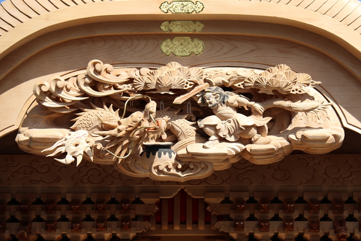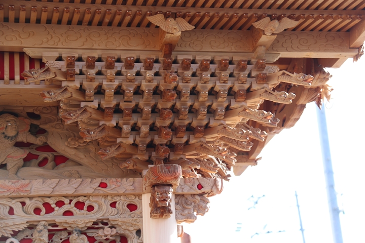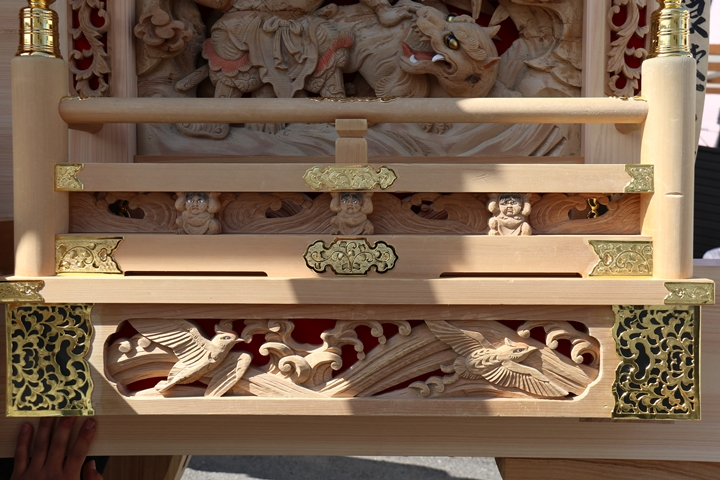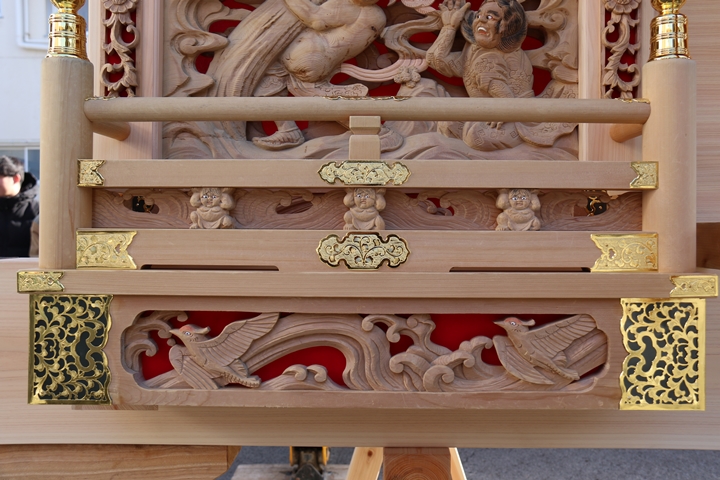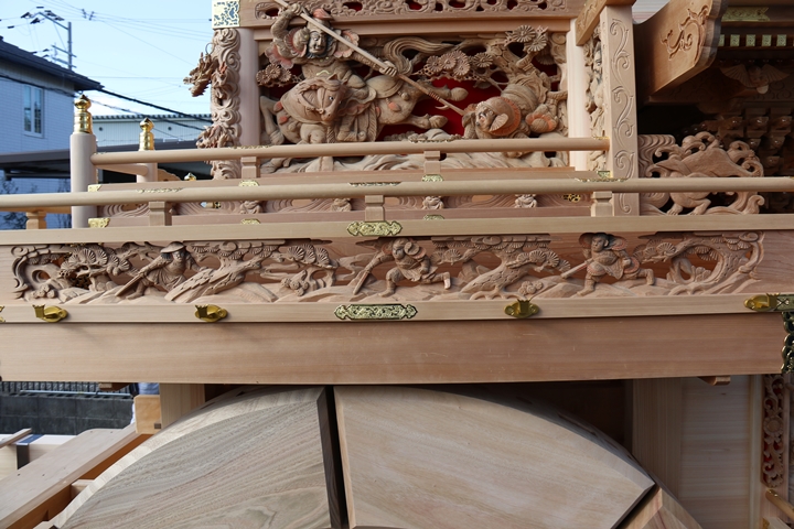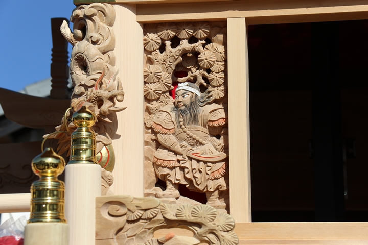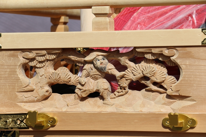 約2ヶ月前の3月10日日曜日、黒田のやぐらが池内工務店から帰町しました。その際、搬入作業の邪魔にならぬ様に彫物を撮影させて頂きました。灰汁洗いされた様で綺麗に生まれ変わっています。そこで今回、