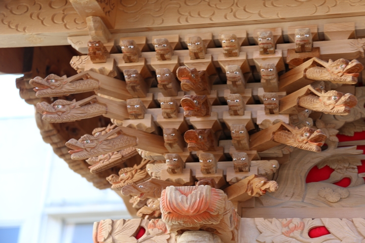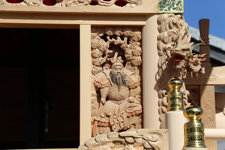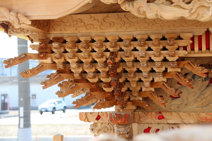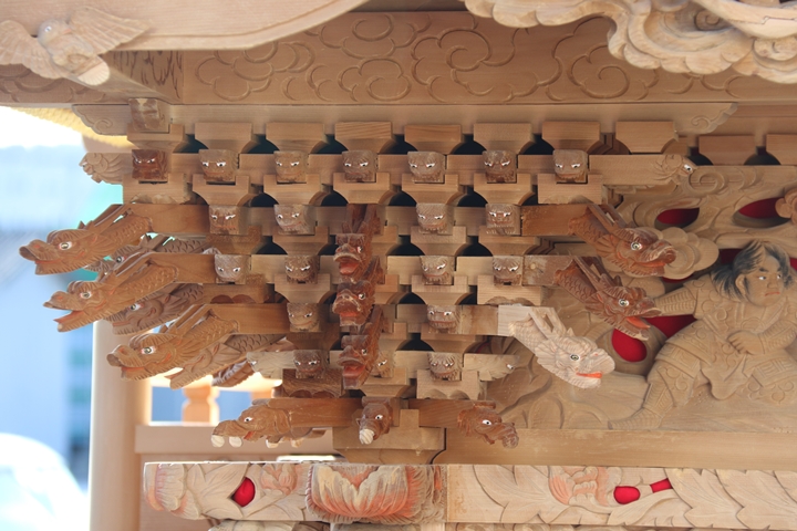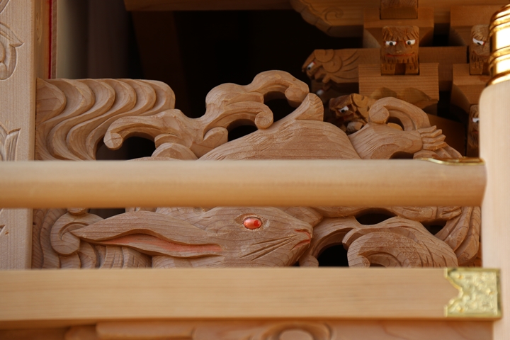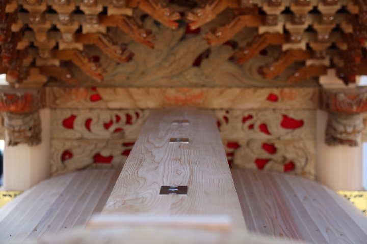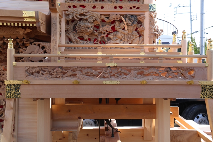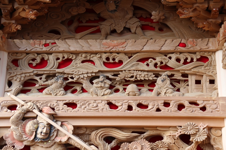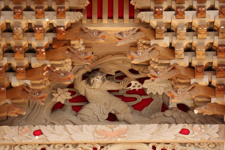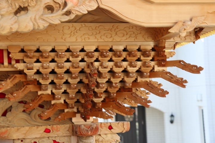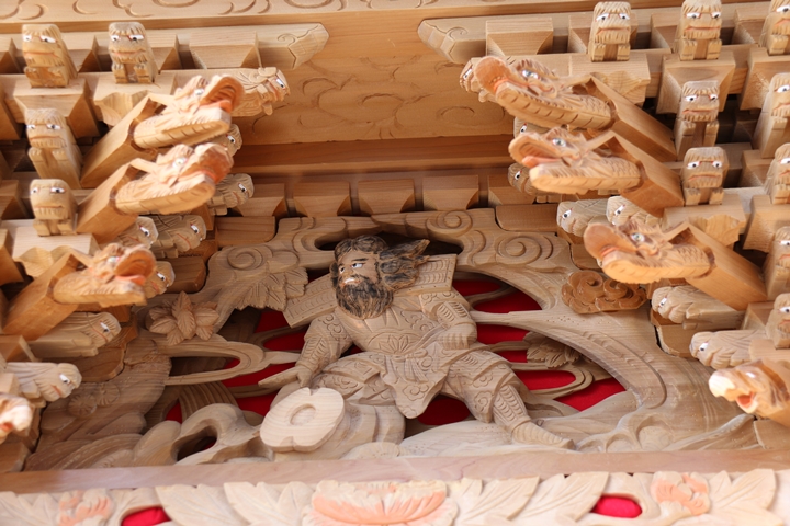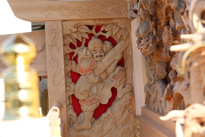 約2ヶ月前の3月10日日曜日、黒田のやぐらが池内工務店から帰町しました。その際、搬入作業の邪魔にならぬ様に彫物を撮影させて頂きました。灰汁洗いされた様で綺麗に生まれ変わっています。そこで今回、