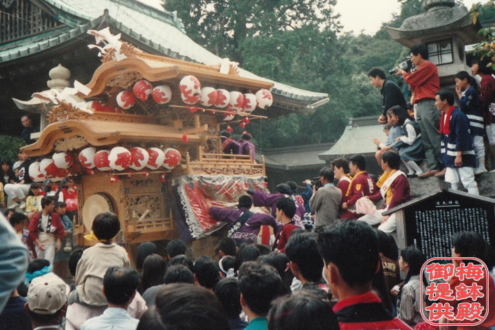 … ![]() 先代やぐら。 ![]() 平成2年9月30日 − やぐらを新調、入魂式を実施。 ![]() 平成10年9月13日 − 駒を新調、入魂式を実施。 ![]() 平成21年9月13日 − 駒を新調、入魂式を実施。 ![]() 令和2年10月4日 − やぐらを灰汁洗い、本幕を新調、やぐら制作30周年記念式典を実施。 |