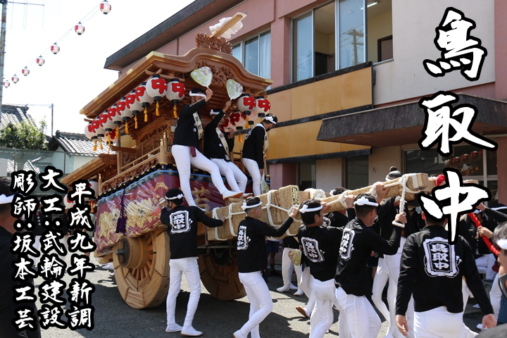 | 阪南市のやぐらの紹介文を【推敲】し改めて御紹介する「地車紹介」、今回は鳥取中のやぐらを御紹介します。武輪建設の出世やぐら、当時貝掛中学校付近に作業所があり私は小雨舞う中、波太神社までオッカケした事を今でも覚えています。27年前かぁ〜、歳月の速さをつくづく感じます。 |