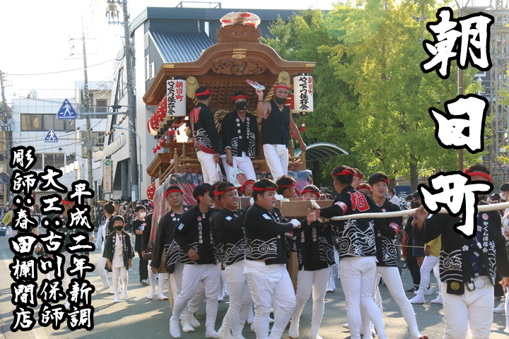 … ![]() 先代やぐら。 ![]() 平成22年9月19日 − 駒を新調、試験曳きを実施。 ![]() 平成23年10月10日 − 朝日町保存会発足30周年記念曳行を実施。 ![]() 平成28年9月18日 − 駒を新調、試験曳きを実施。 |