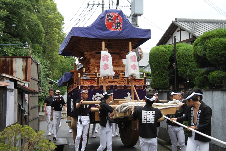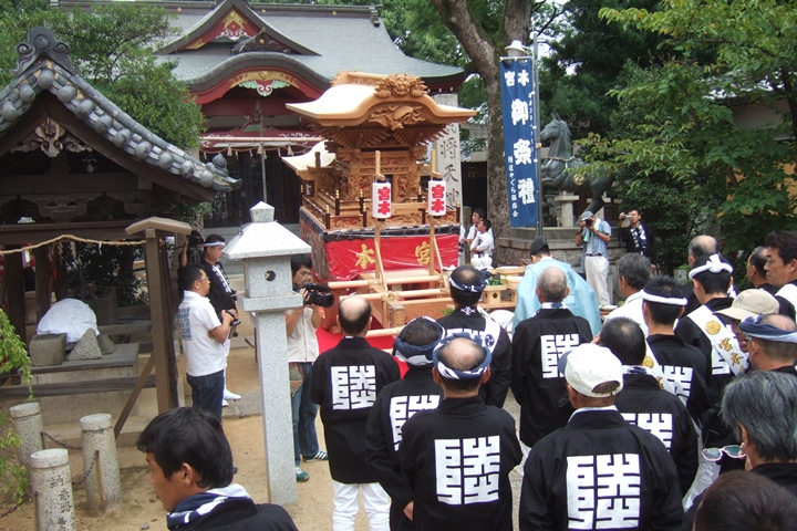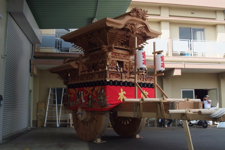 | 泉南市のやぐらの紹介文を【推敲】し改めて御紹介する「地車紹介」、今回は陸宮本のやぐらを御紹介します。新調入魂式が行われた平成20年9月15日、岸和田だんじり祭 宵宮・本宮2日間を堪能し深夜に帰宅、そして当日は6時起床で新調入魂式へ行った様です。今から17年前にはこんな無理もできました。 (^^ゞ汗 |