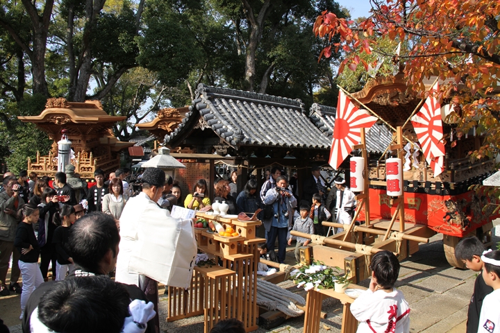 … ![]() 平成22年11月7日 − やぐら新調原木祭を実施。 ![]() 平成25年11月24日 − 昇魂式を実施。 ![]() 平成26年3月29日 − 阪南市在住の個人宅へ搬出。 ![]() 平成26年7月20日 − やぐらを新調、入魂式を実施。 ![]() 平成27年7月中旬 − やぐら新調記念誌を発刊。 |