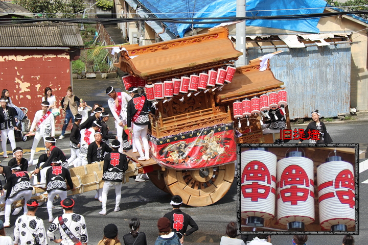 … ![]() 三先代やぐら。 (先代山中渓) ![]() 先々代やぐら。 (現在は男里北組) ![]() 先代やぐら。 ![]() 先代やぐらの一部、岡中鎮守神社境内へ保存中。 ![]() ナルを付けていた時代。 ![]() 平成17年9月17日 − 駒を新調、入魂式を実施。 ![]() 平成20年 − 芯棒を鉄芯へ交換。 ![]() 平成21年9月5日 − 地車庫新築記念曳行を実施。 ![]() 平成25年10月 − 提燈のデザインを変更。 ![]() 平成27年10月4日 − 駒を新調、入魂式を実施。 ![]() 令和5年9月3日 − 駒を新調、入魂式を実施。 |