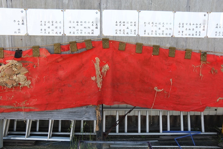 | 昨日足を運んだ新町こども祭り、その場で昔の本幕が展示されていました。先代やぐら新調時の大正7年に新調された本幕で昭和60年まで使用、経年相応の劣化は否めませんが非常に価値高い本幕かと思います。そこで今回、「地車研究」と題して新町の昔の本幕を御紹介します。 |