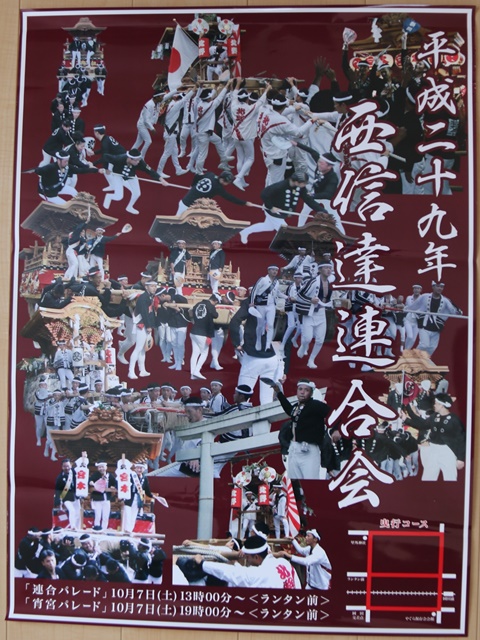 | 2年連続の曳行自粛で本当にネタが枯渇しています。 (^^ゞ汗 故に過去ネタをもう一度。平成19年以降、西信達地区のポスターを頂戴し既に12枚ものポスターが揃っています。そこで今回、「地車研究」と題して西信達地区のポスターを御紹介します。なお平成20年は何故か?ポスターが製作されなかった様です、悪しからず。 |