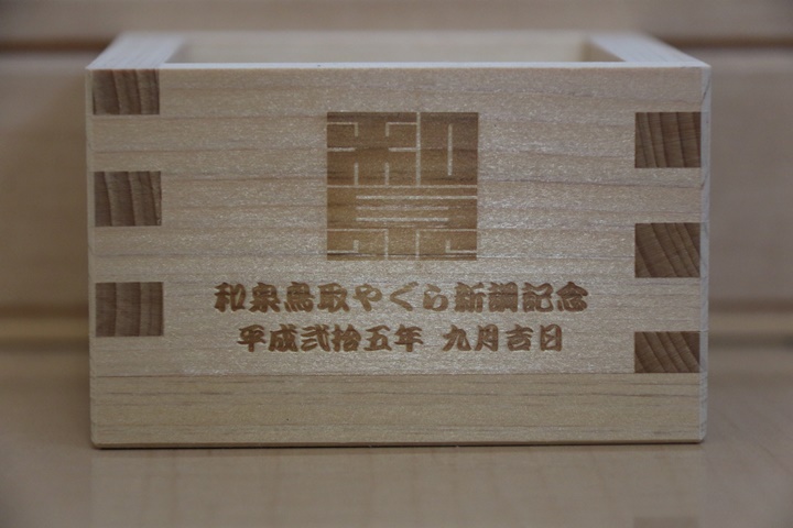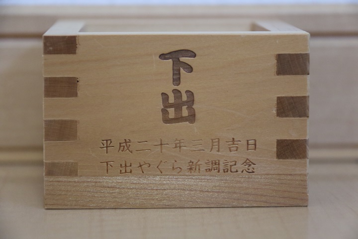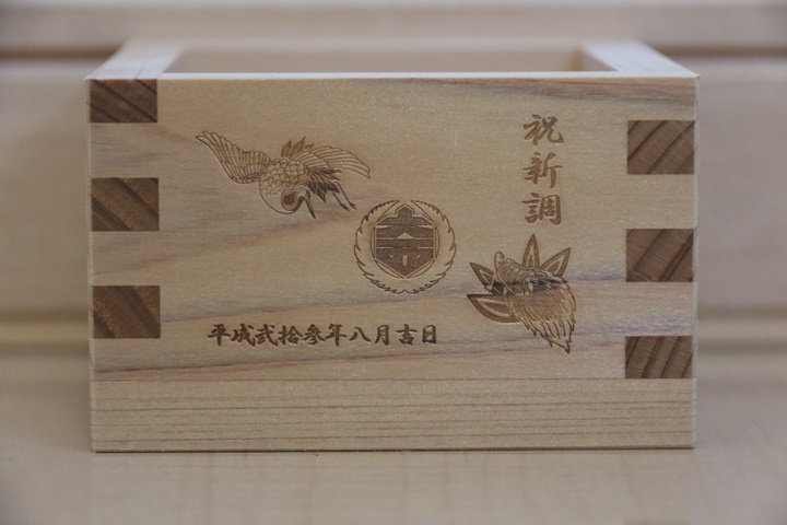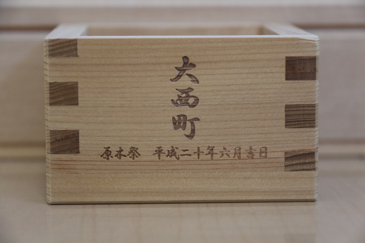 | 最近、入魂式等の祝宴で記念の木桝が用意されている事が多くなってきています。私が持っている木桝は平成20年3月の下出やぐら新調入魂式以降、15個にもなります。そこで今回、「地車研究」と題して木桝を御紹介しようと思います。 |