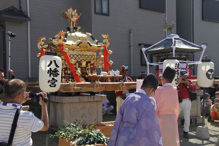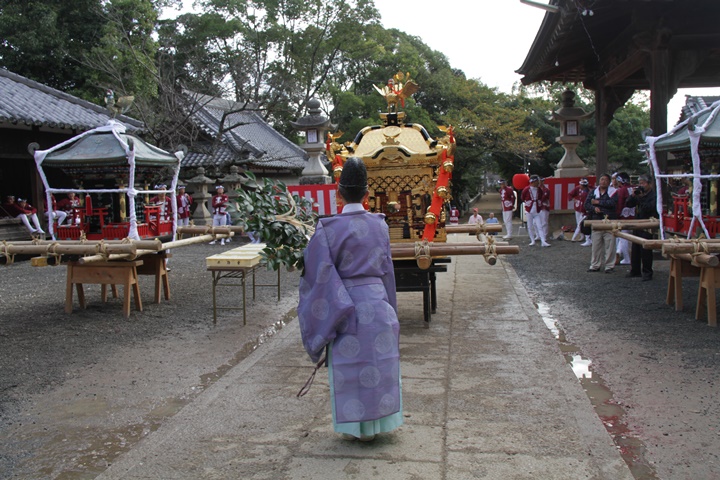 ![]() ▲ 波太神社にて神幸祭 ![]() ▲ 三基で練り合わせ ![]() ▲ 神輿渡御 ![]() ▲ 海老野にて御旅所祭 |