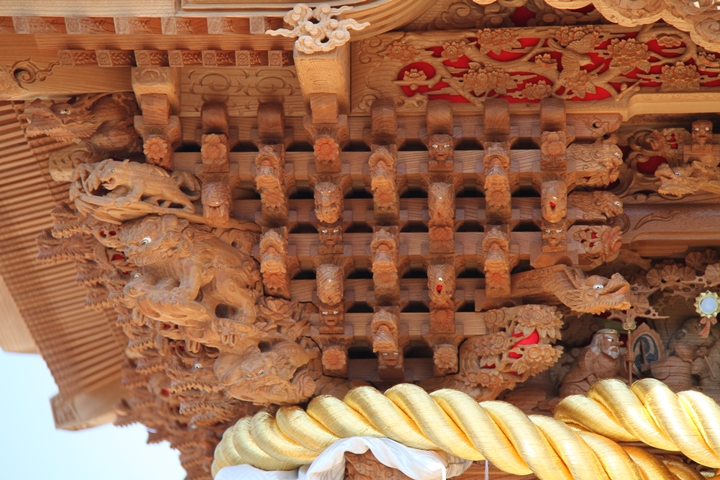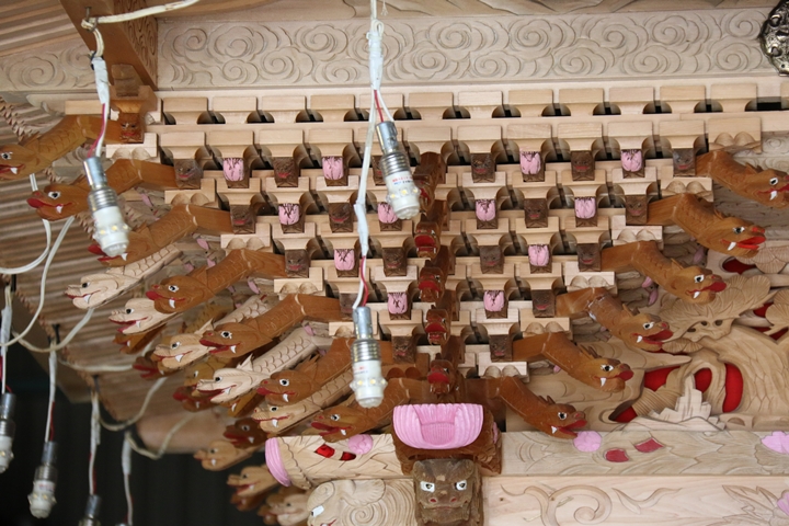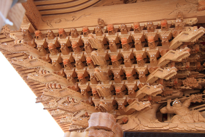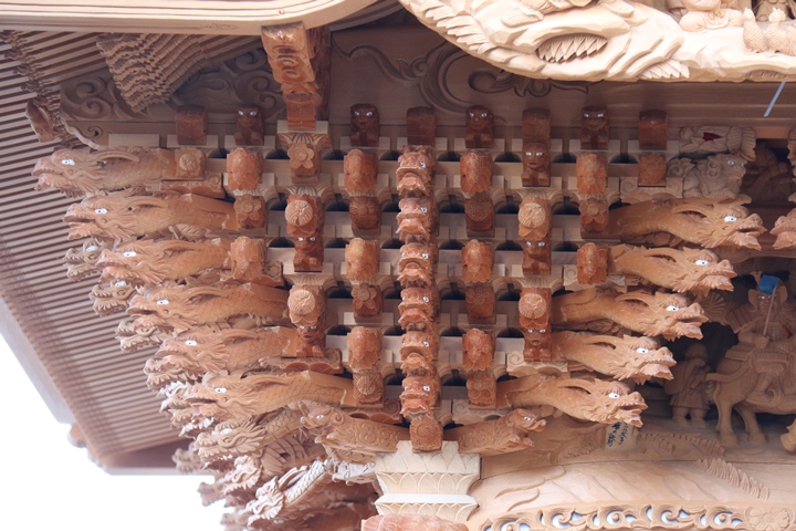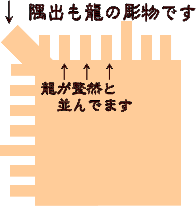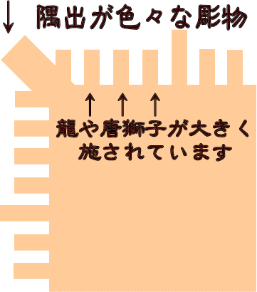 | ちょっと解りづらいかも知れませんが隅出に龍ではなく色々な彫物が施される傾向があります。 |