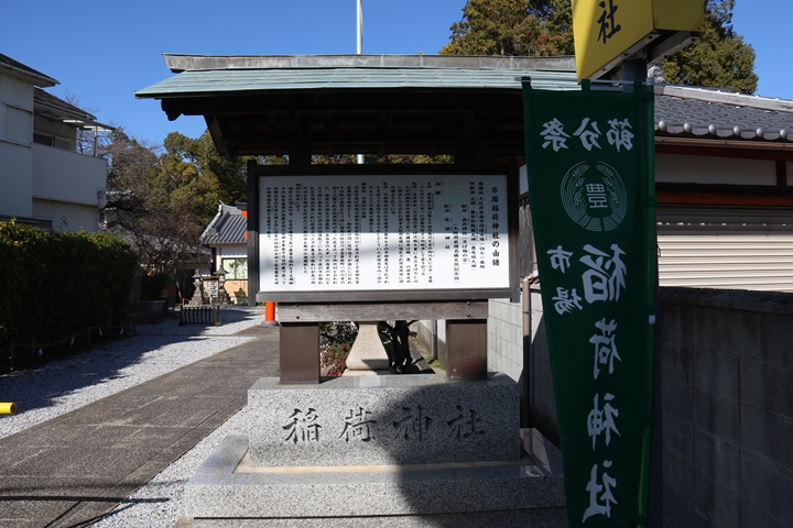 | 【御祭神】 ・豊受姫大神(とようけのおおかみ) ・所在地:泉南市信達市場1471 ・例祭:10月第二土・日曜日 ・宮入やぐら:市場 主神 豊受姫大神は第七十四代鳥羽天皇の御代天仁元年(皇歴1768年)に伊勢外宮より御観請して斎き祀つる 配神 赤井神社(又は梅の宮)は淡輪文書にあるまぼろしの大巨刹佛性寺の守護神であった佛性寺は織,豊,の根來攻めに焼失したと云われ、後年大阪府史蹟に指定され現在跡地に碑が建立されている 配神 牛神神社は牛の守護神で毎年七夕の早朝農家はそれぞれ牛を追うて参拝するをならわしとしていたが現在市内一頭の牛もなくこの風習は廃絶した 鎮座地 市場村の由緒 信達市場は当時日根郡信達荘御所村と称され遠く平安朝天皇家貴族を始めとして一般民衆の間に熊野詣でが盛んに行われ、その際の宿所となり、特に後鳥羽院白河法皇等熊野への行幸の砌り止宿される仙洞御所のあった故を以って御所村と云われた、後世江戸期より信達荘(泉南市の大半)の商業の中心となり、特に毎年年末に村内の往還数丁にわたって歳の市が開かれ、正月用品の買入れ近在より人々が集まり賑わいがあり御所村を市場村と改めた。この歳の市も戦中以後廃絶した 稲荷の称号に付いて 稲荷とは稲みのる、なるの意味であり農業を始めとする機織その他各産業の発展を司る神を奉斎する社の義であって伊勢内宮の天照大神と共に日本の始祖の女神である豊受大神の御神徳を称讃する尊号である。 |