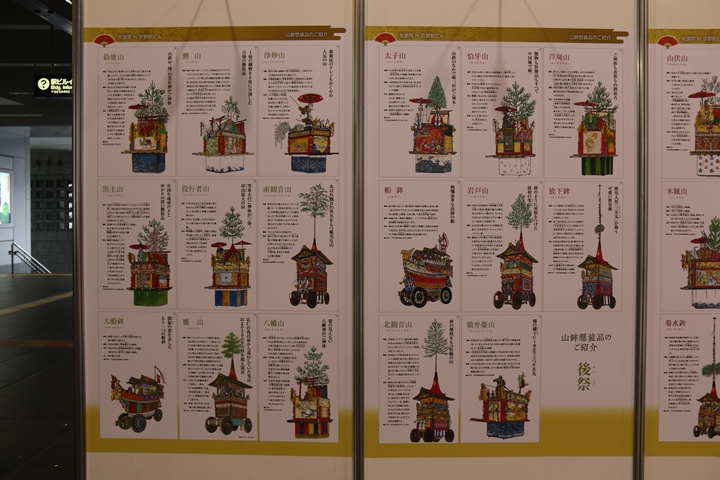 ▲ そしてコチラが前祭で巡行される山鉾の紹介。