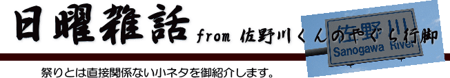 | 追伸、来週・再来週の「佐野川くんのにちよう雑話」は祭禮のためお休みします。次回は10月15日にアップします。 |