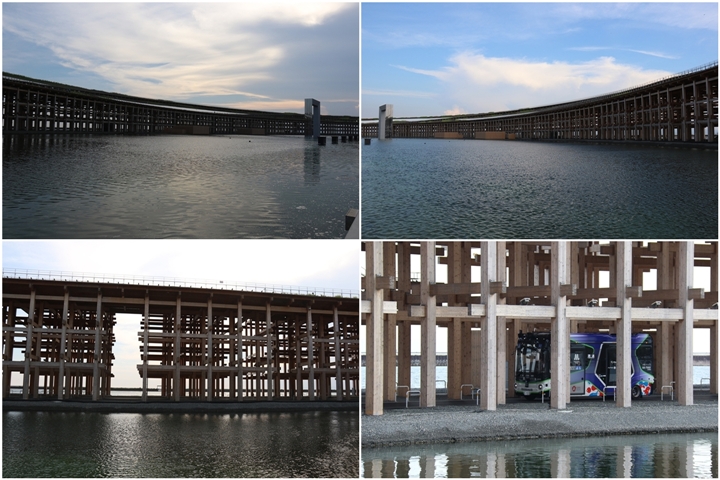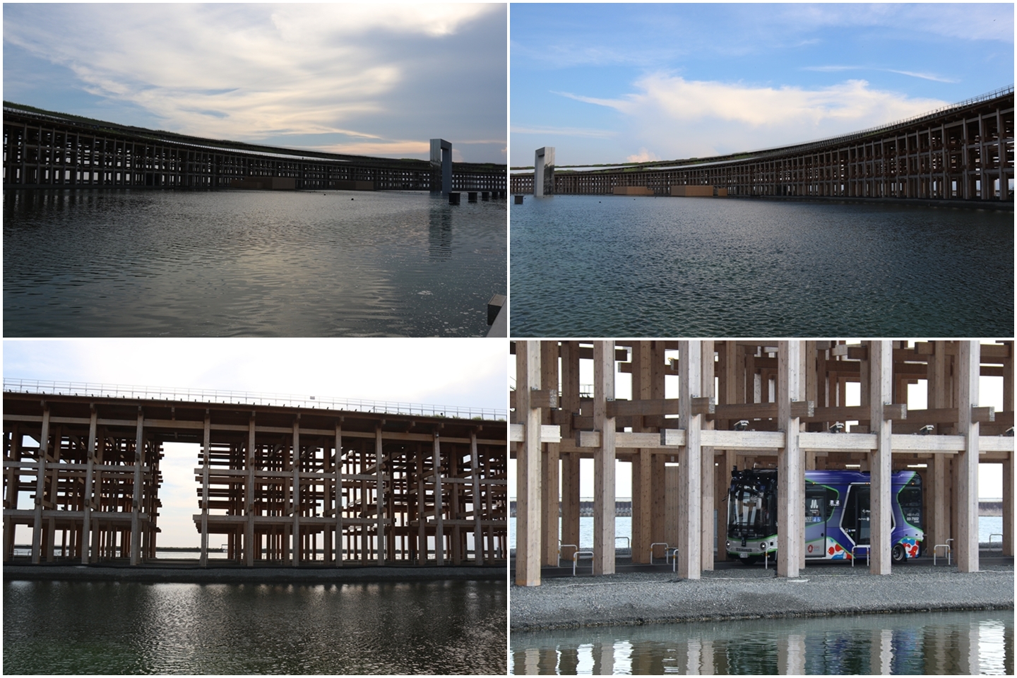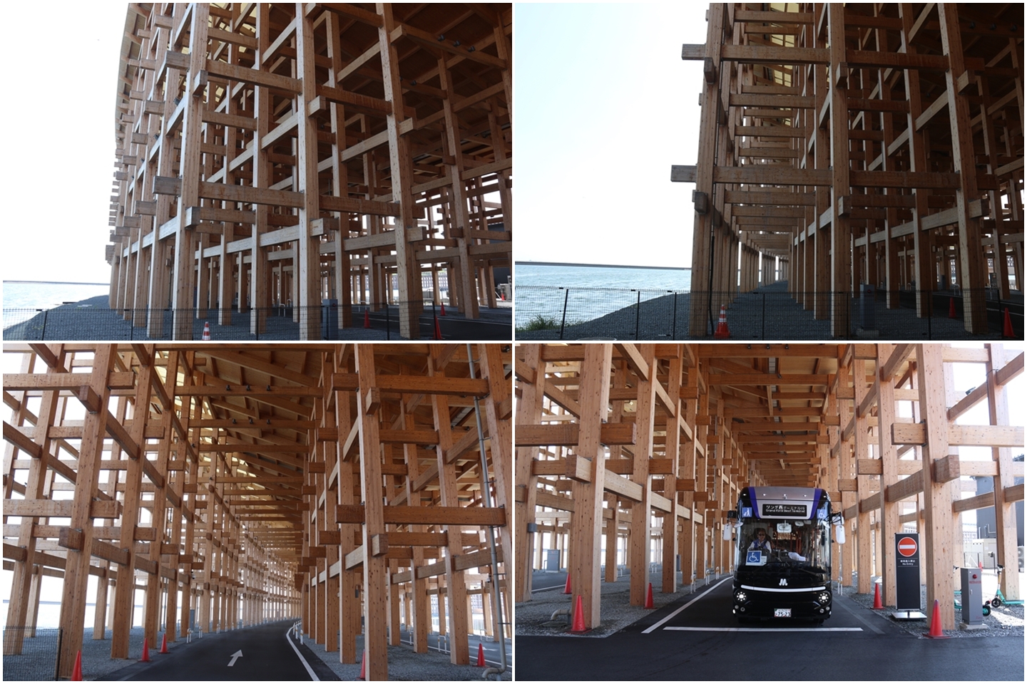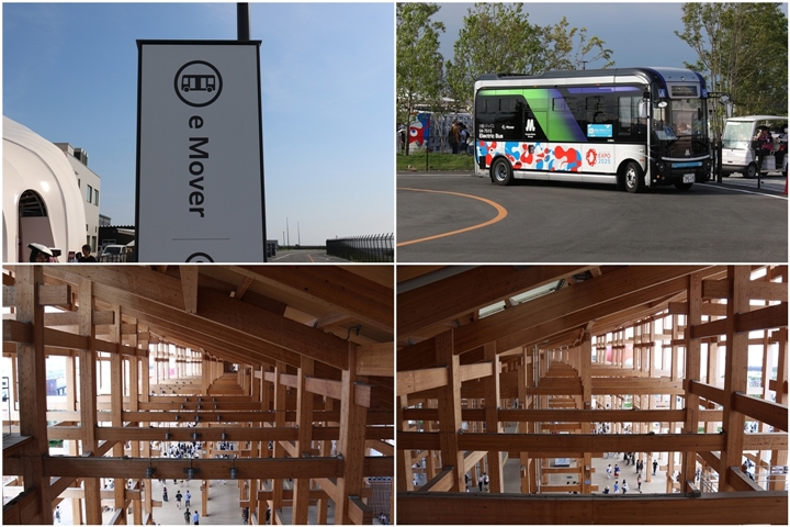 ▲ eMoverっていうバスに乗り大屋根リングの下を走行した後、大屋根リングに登ります。