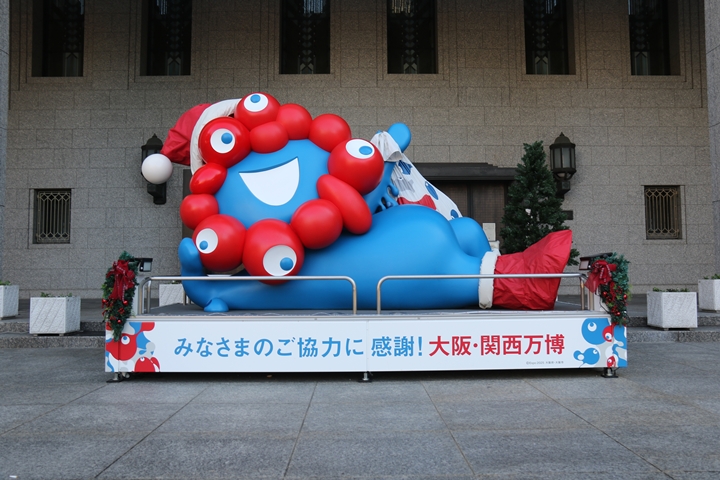 ▲ コチラは大阪市役所前のクリスマス仕様のミャクミャク。