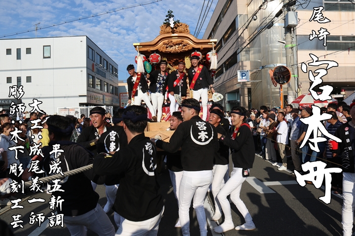 2025/9/3 - 尾崎宮本町のやぐら![]() ![]() ![]() ![]() 祭禮を前に各町やぐらを御紹介します。 【尾崎宮本町】 平成5年大工:成尾義一師、彫師:木下彫刻工芸によって新調。波太神社宮入り時のみ赤地に白文字の提燈を付けます。 (尾崎地区) |