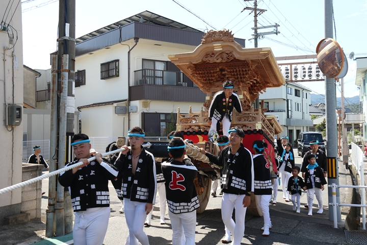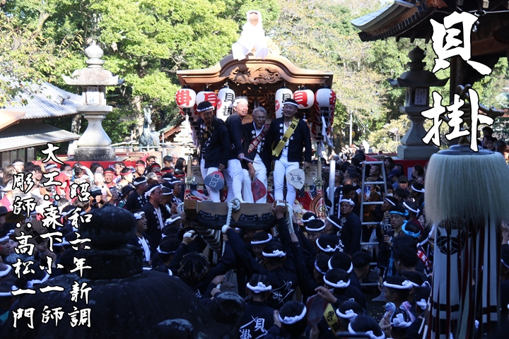 2025/9/13 - 貝掛のやぐら![]() ![]() ![]() ![]() 祭禮を前に各町やぐらを御紹介します。 【貝掛】 昭和6年大工:森下小一師、彫師:高松一門によって新調。令和5年、武輪建設によって大修復、灰汁洗い、本幕の復元が行われました。 (下荘地区) |