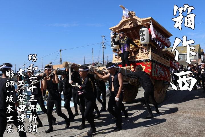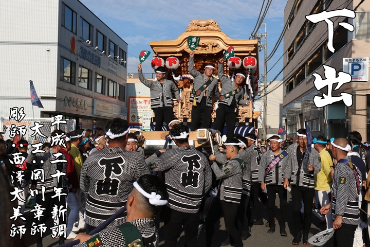 2025/9/19 - 箱作西のやぐら![]() ![]() ![]() ![]() 祭禮を前に各町やぐらを御紹介します。 【箱作西】 昭和63年大工:安田建設、彫師:坂本工芸によって新調。令和5年、安田建設によって大修復、灰汁洗いが行われました。 (下荘地区) |