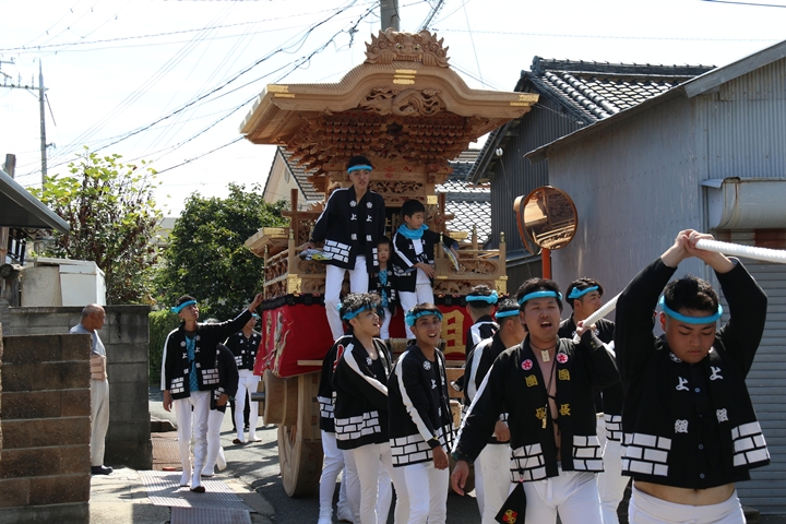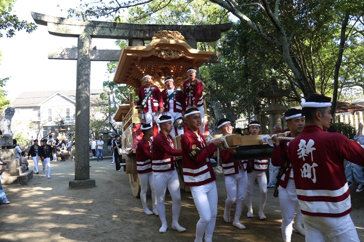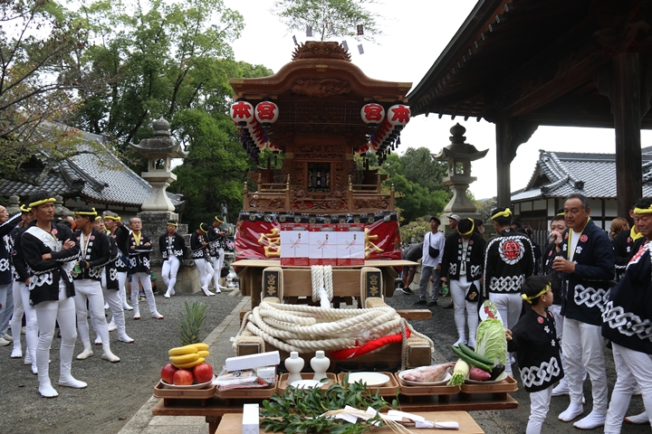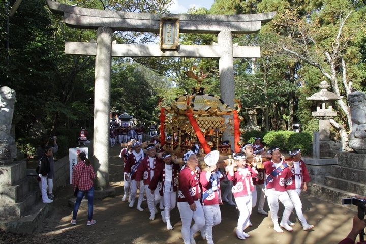 2025/9/23 - 指出森神社![]() ![]() ![]() ![]() 祭禮を前にやぐらが宮入りする神社を御紹介します。 【指出森神社】 阪南市貝掛1462に鎮座し貝掛のやぐらが宮入りする。今年、下荘地区の宮当番に当たり箱作東・箱作西のやぐらも宮入りする。御祭神:誉田別命(応神天皇)。 |
