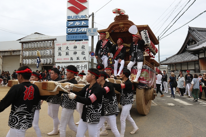 2025/12/11 - 波太神社宮入り![]() ![]() ![]() ![]() 祭禮が終わったので改めて今年の波太神社宮入りを振り返ります。貝掛が宮上がりし西鳥取上組・榮組・波有手組が宮入り、新町を含め四台で綺麗にまっせーします。ちなみに西鳥取上組は大修復以来初めての宮入りです。 |