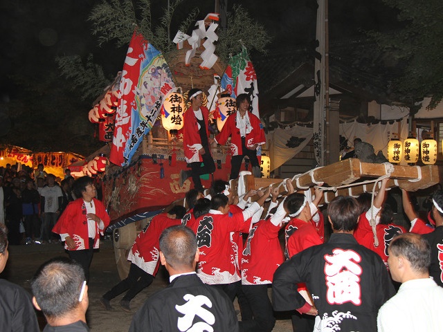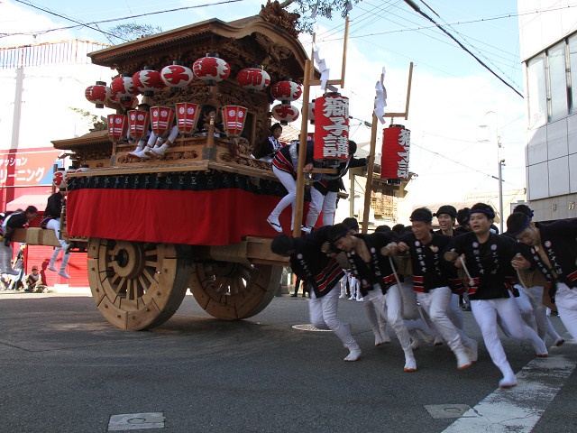 … ![]() ▲ 新調130周年 − 濱中講(明治19年/1886年)。 ![]() ▲ 新調90周年 − 大西連中(大正15年頃/1926年頃)。 ![]() ▲ 新調85周年 − 貝掛(昭和6年/1931年)。 ![]() ▲ 新調80周年 − 岡本(昭和11年/1936年)。 ![]() ▲ 新調65周年 − 獅子講(昭和26年/1951年)。 ![]() ▲ 新調30周年 − 深日一号(昭和61年/1986年)。 ![]() ▲ 新調20周年 − 相生町(平成8年/1996年)。 ![]() ▲ 新調5周年 − 大西町(平成23年/2011年)。 ![]() ▲ 新調5周年 − 男里南組(平成23年/2011年)。 … |