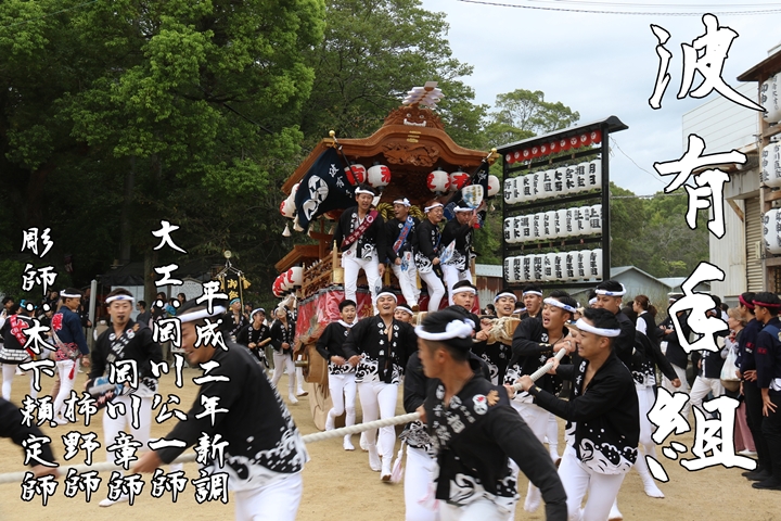 ![]() 【波太神社】 阪南市石田167に鎮座し、宵宮には全18台のやぐらが宮入りし本宮には海老野まで神輿渡御を行う。御祭神:角凝命・応神天皇。 |