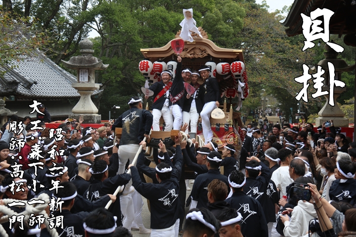 ![]() 【貝掛】 昭和6年大工:森下小一師、彫師:高松一門によって新調。昨年、武輪建設によって大修復、灰汁洗い、本幕の復元が行われました。 (下荘地区) |