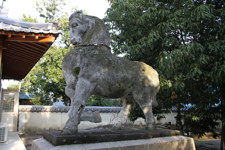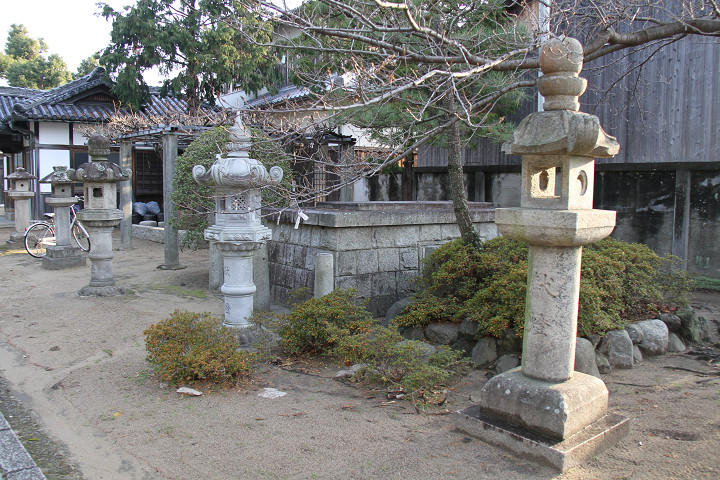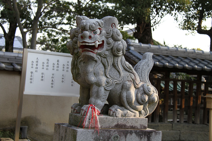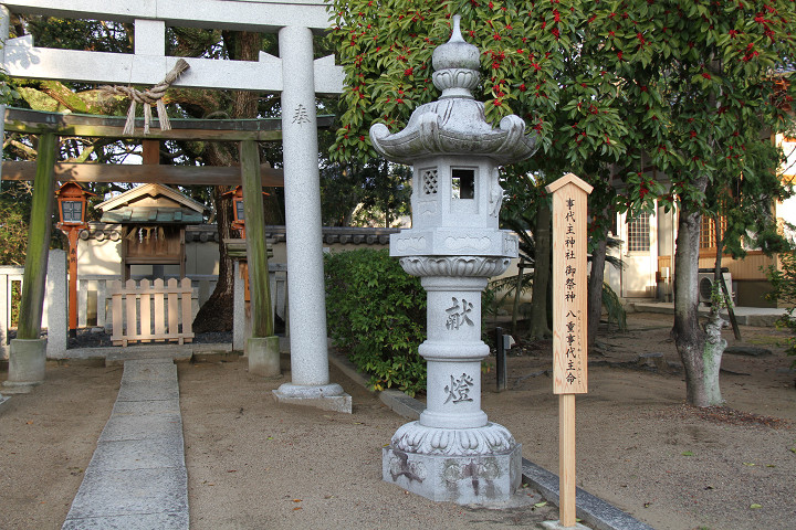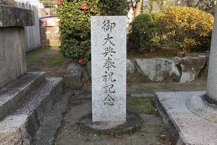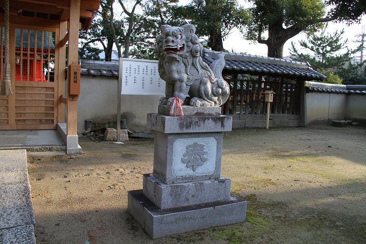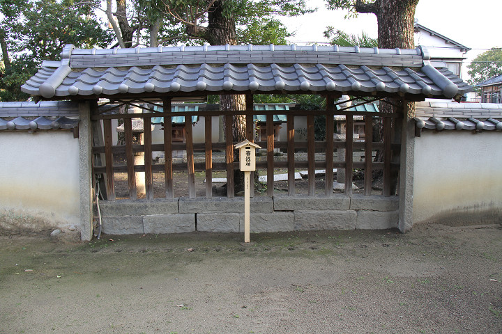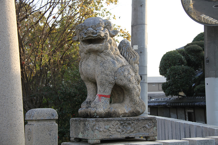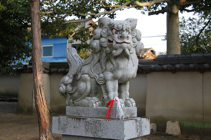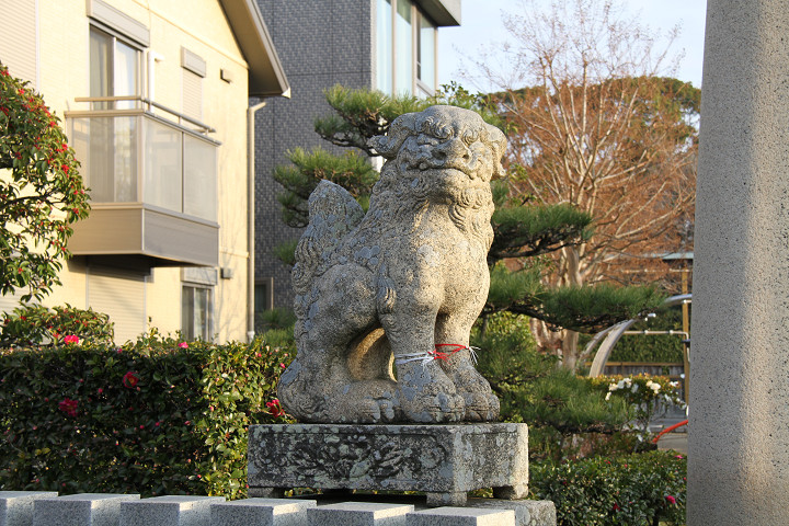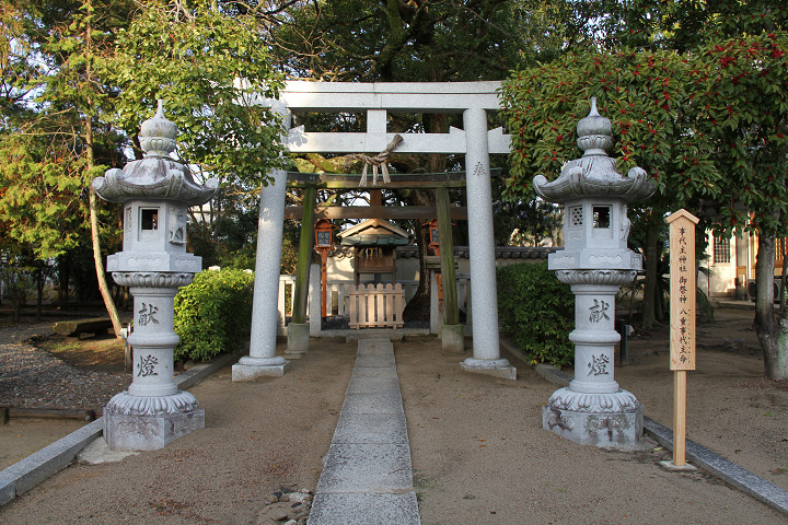 明治5年村社に列し、同40年11月10日字稻荷の村社稲荷神社(保食神)、字南出の同巖島神社(市杵島姫命)、字毘沙門の無格社多聞天神社(大山衹命)、字東出の同日向神社(太田命)、字北濱出の同事代主神社(八重事代主命)、字大將軍山の同大將軍神社(磐長姫命)及び大字嘉祥寺字村端の同八坂神社(素戔嗚命)を合祀し、同42年10月神餞幣帛料供進社に指定せらる。往時にありては北方田尻川の南岸より、舊加太街道の東に沿いて南に亘れる壱萬七千餘坪の境内なりしが、現在は境内外を通じて約五千坪の社地となる。末社に若宮神社あり。氏地は本地一圓。