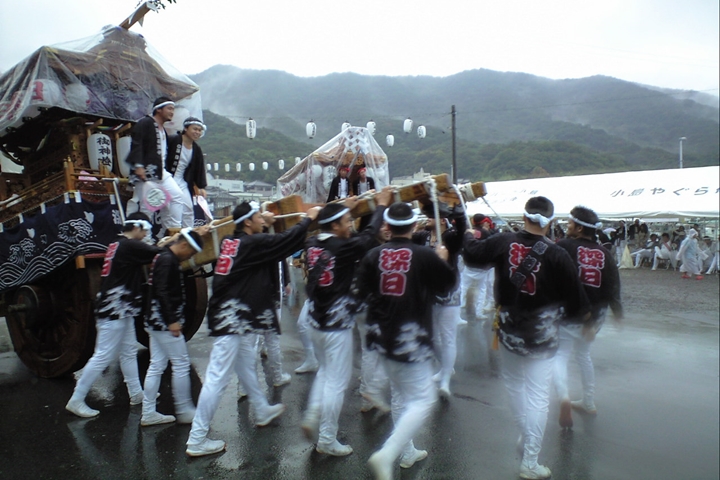 | ● 深日一号の略年表 ・平成19年−提燈のデザインを変更。 ・平成19年10月21日−先代やぐらの昇魂式を実施。 ・平成19年10月28日−神上式を終えた先代・下出のやぐらを搬入。 ・平成19年12月9日−先代やぐらを解体。 ・平成20年4月20日−現在のやぐらを譲受、やぐら部屋前にて入魂式を実施。 ・平成22年10月3日−小島やぐら10周年記念深日・小島合同曳行を実施。 ・令和2年−新型コロナウイルス感染症対策として曳行自粛。 ・令和3年−新型コロナウイルス感染症対策として曳行自粛。 |
